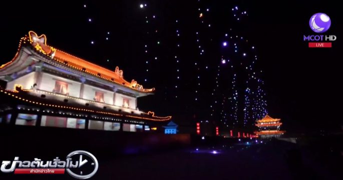 จีนจัดแสดงโดรนประดับไฟระยิบระยับเหนือท้องฟ้าเมืองซีอาน มณฑลส่านซี ฉลองวันแรงงาน ใช้คนบังคับโดรน 1,347 ลำ แค่คนเดียวเท่านั้น