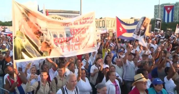 ชาวคิวบาเกือบล้านคนเดินขบวนเนื่องในวันแรงงานในโอกาสฉลองครบ 60 ปีแห่งการปฏิวัติคิวบา และแสดงพลังสนับสนุนรัฐบาลประธานาธิบดีนิโกลัส มาดูโรของเวเนซุเอลา