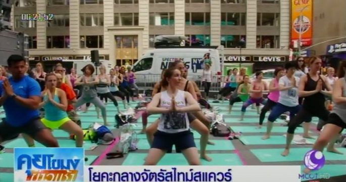 สาวกโยคะกว่า 12,000 คน เตรียมเข้าร่วมเล่นโยคะกลางจัตุรัสไทม์สแควร์ เนื่องในวันโยคะโลก ซึ่งจัดขึ้นเป็นปีที่ 3 ในปีนี้
