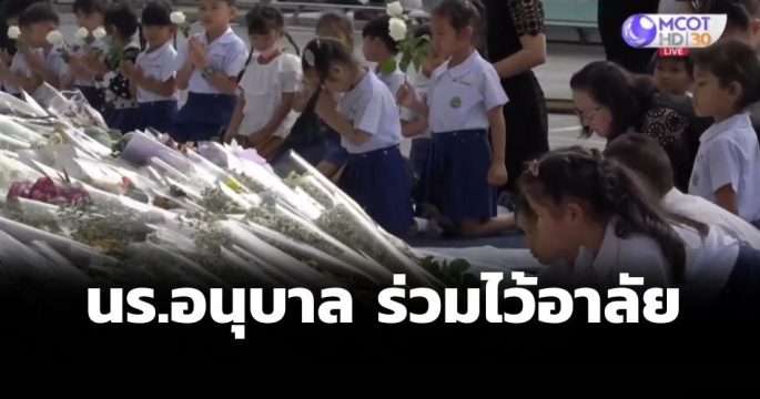 นักเรียนอนุบาลวางดอกไม้ไว้อาลัยเหยื่อกราดยิงเทอร์มินอล 21