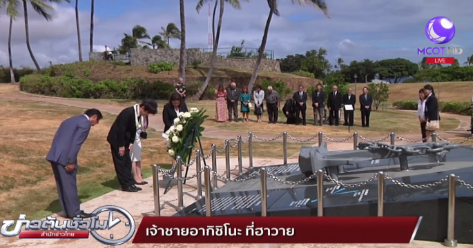 เจ้าชายอากิชิโนะ และเจ้าหญิงกิโกะ ทรงวางพวงมาลาที่อนุสรณ์เอฮิเมะ มารุ รำลึกถึงผู้เสียชีวิต 9 คน จากเหตุเรือดำน้ำยูเอสเอส กรีนวิลล์ ของกองทัพเรือสหรัฐ พุ่งชนเรือเอฮิเมะ มารุ ของญี่ปุ่น