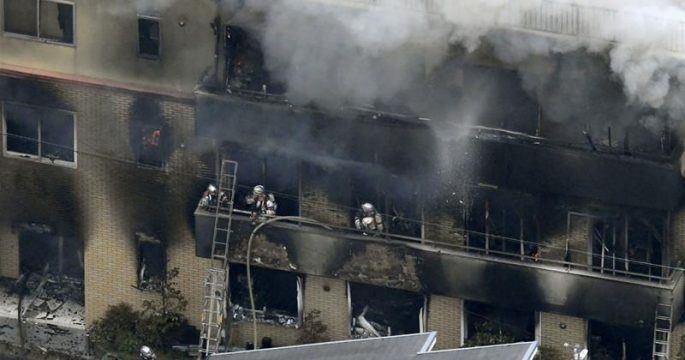 ไฟไหม้สตูดิโอแอนิเมชันแห่งหนึ่งในเมืองเกียวโตของญี่ปุ่น มีผู้เสียชีวิตแล้ว 1 คน บาดเจ็บ 35 คน เจ้าหน้าที่สันนิษฐานว่าเป็นการวางเพลิง