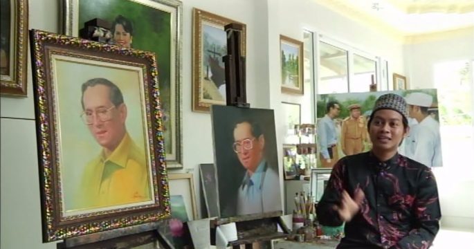 ศิลปินหนุ่มชาวไทยมุสลิมที่ อ.โคกโพธิ์ จ.ปัตตานี ใช้เวลากว่า 3 ปี ตั้งใจวาดพระบรมสาทิสลักษณ์ขณะทรงงานในพื้นที่จังหวัดชายแดนภาคใต้ให้ครบ 80 ภาพ