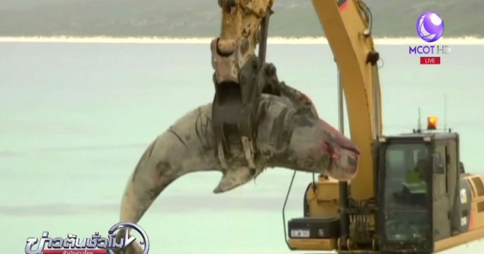 วาฬผอมโซที่มีขยะพลาสติกหนัก 40 กิโลกรัมอยู่ในกระเพาะอาหารตายลงเมื่อวันเสาร์หลังเกยตื้นที่ชายหาดฟิลิปปินส์ในวันศุกร์