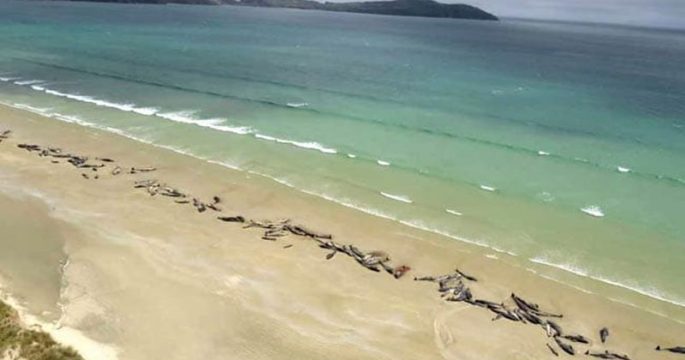 ฝูงวาฬนำร่องครีบยาวเกยตื้นวานนี้กว่า 90 ตัวตายแล้ว ขณะที่อีก 180 ตัวยังคงเกยตื้นที่อ่าวแมคควอรีบริเวณเกาะแทสเมเนียของออสเตรเลียท่ามกลางความท้าทายในการช่วยเหลือฝูงวาฬในวันนี้