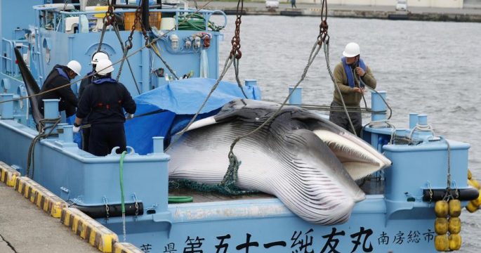 กองเรือล่าวาฬขนาดเล็กของญี่ปุ่นสามารถล่าวาฬตัวแรกได้แล้วในวันนี้หลังจากที่ญี่ปุ่นเริ่มการล่าวาฬเพื่อการพาณิชย์อีกครั้งในรอบกว่าสามสิบปี