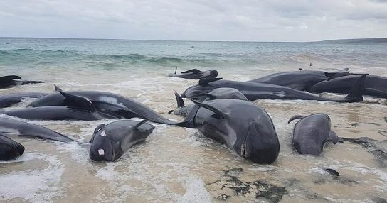 อาสาสมัครในออสเตรเลียระดมกำลังช่วยเหลือฝูงวาฬเกยตื้นบริเวณชายหาดเฮมลินเบย์ทางใต้ของเมืองเพิร์ธ มีจำนวนมากถึง 150 ตัว แต่สามารถช่วยชีวิตได้เพียง 5 ตัว