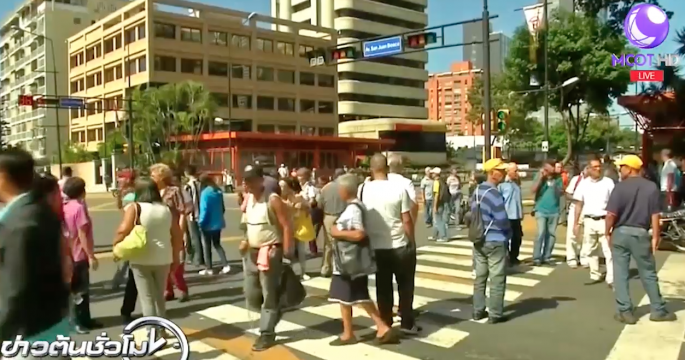ผู้รับเงินบำนาญชาวเวเนซุเอลาหลายร้อยคน มารอต่อคิวกันตามหน้าธนาคารหลายแห่งในกรุงการากัส เพื่อขอรับเงินบำนาญรายเดือนจนทำให้ถนนหลายสายเกิดปัญหาการจราจรติดขัด