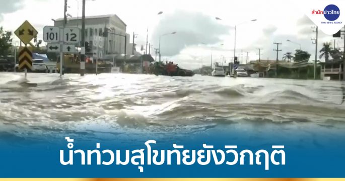 น้ำที่ท่วมตัวเมืองสุโขทัยฝั่งตะวันตก ตอนนี้ยังวิกฤติ แม้ระดับน้ำจะเริ่มทรงตัว แต่บางหมู่บ้านยังมีท่วมสูงเกือบ 2 เมตร เรียกว่าบ้านชั้นเดียวมิดหลังคา บางส่วนต้องขึ้นไปอยู่บนชั้น 2 ของบ้าน หลายครอบครัวเดือดร้อนหนัก โดยเฉพาะบ้านที่มีเด็กและผู้สูงอายุ เริ่มขาดแคลนอาหารและยารักษาโรค