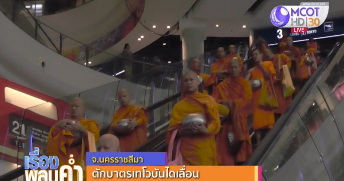 โซเชียลวิจารณ์! ตักบาตรเทโวบันไดเลื่อนกลางห้างดังเมืองโคราช ทำบุญเนื่องในวันออกพรรษา