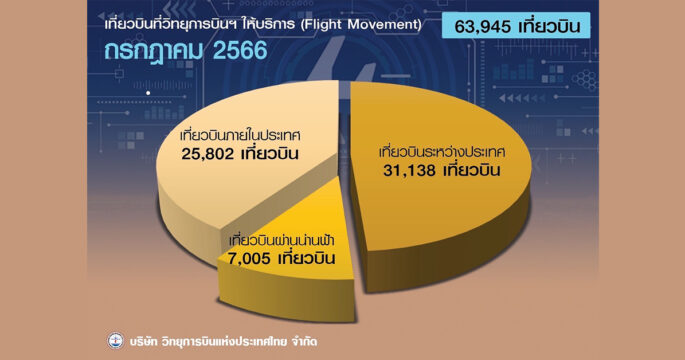 วิทยุการบินฯ สรุปปริมาณเที่ยวบินที่ให้บริการจราจรทางอากาศในเดือนกรกฎาคม 2566 มีจำนวน 63,945 เที่ยวบิน