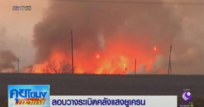 คนร้ายก่อวินาศกรรมระเบิดคลังเก็บอาวุธที่ฐานทัพของยูเครน ทำให้ต้องอพยพประชาชนราว 20,000 คน ไปอยู่ในที่ปลอดภัย โดยไม่มีผู้เสียชีวิตหรือได้รับบาดเจ็บ