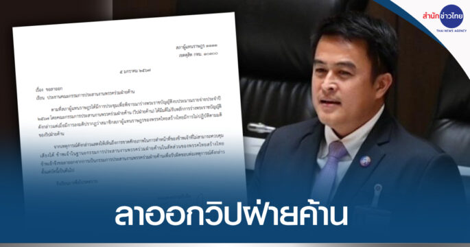 “ชัชวาล” สส.ไทยสร้างไทย ลาออกจากวิปฝ่ายค้าน และรองเลขาธิการพรรคไทยสร้างไทย เซ่นปม 3 สส.โหวตสวนมติวิปฝ่ายค้าน