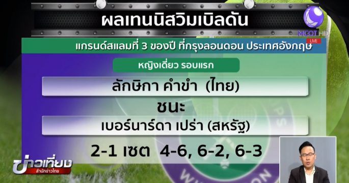 ลักษิกา คำขำ นักเทนนิสมือ 1 ของไทย ผ่านเข้ารอบ 2 เทนนิสวิมเบิลดัน ขณะที่จอมเตะทีมชาติไทย เดินทางไปทำศึกจอร์แดน โอเพ่น