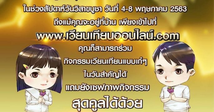 เนื่องในสถานการณ์โรคโควิด-19 วันวิสาขบูชาปีนี้ พศ.เชิญชวนพุทธศาสนิกชน ร่วมเวียนเทียนออนไลน์ เพื่อเว้นระยะห่างทางสังคม ป้องกันโรคโควิด-19