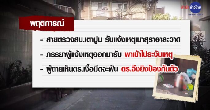 ตำรวจกว่า 50 นาย ปิดล้อมบ้านหลังหนึ่ง ต.โคกช้าง อ.บางไทร จ.พระนครศรีอยุธยา วิสามัญชายวัย 51 ปี ยิงภรรยาเสียชีวิตคาห้องนอน หลังไม่ยอมเจรจาและยิงต่อสู้ ตำรวจจึงยิงตอบโต้เพื่อป้องกันตัว