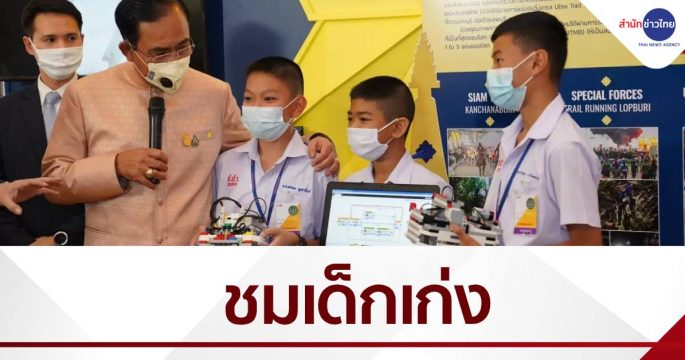 นายกฯเยี่ยมชมกิจกรรมที่กระทรวงต่าง ๆ นำมาจัดแสดงก่อนประชุมครม. ชื่นชมเด็กนักเรียนนำหุ่นยนต์มาโชว์ เก่งมาก ขอให้มีอนาคตที่ดี ประสบความสำเร็จ