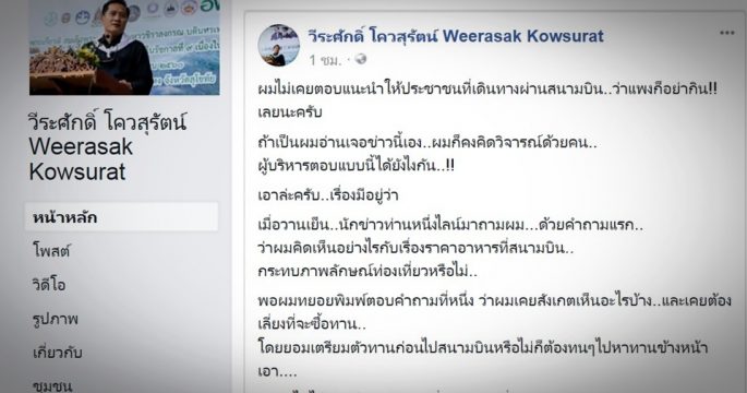 สำนักข่าวไทย 12 ม.ค.-รมว.ท่องเที่ยวฯ โต้ข่าวให้สัมภาษณ์ ‘อาหารและเครื่องดื่ม’ ในสนามบินแพง อย่าไปกิน ย้ำไม่นิ่งนอนใจกับปัญหา จันทร์นี้นัดหารือ รมว.คมนาคม รวมทั้งปัญหารถแท๊กซี่ ระบบขนส่ง และความปลอดภัยฯลฯ นายวีระศักดิ์ โควสุรัตน์ รัฐมนตรีว่าการกระทรวงการท่องเที่ยวและกีฬา โพสต์ผ่านเฟซบุคส่วนตัว ‘วีระศักดิ์ โควสุรัตน์ Weerasak Kowsurat ’โดยระบุว่า ไม่เคยตอบแนะนำให้ประชาชนที่เดินทางผ่านสนามบินว่าแพงก็อย่ากินเลย และถ้าเป็นตนอ่านเจอข่าวนี้เองก็คงคิดวิจารณ์ด้วยคน ผู้บริหารตอบแบบนี้ได้ยังไงกัน นายวีระศักดิ์ กล่าวว่า เรื่องมีอยู่ว่านักข่าวคนหนึ่งไลน์มาถามด้วยคำถามแรกว่าคิดเห็นอย่างไรกับเรื่องราคาอาหารที่สนามบิน กระทบภาพลักษณ์ท่องเที่ยวหรือไม่ พอทยอยพิมพ์ตอบคำถามที่หนึ่ง ว่าเคยสังเกตเห็นอะไร บ้างและเคยต้องเลี่ยงที่จะซื้อทาน โดยยอมเตรียมตัวทานก่อนไปสนามบินหรือไม่ก็ต้องทนๆไปหาทานข้างหน้าเอาและยังไม่ได้พิมพ์ตอบคำถามที่ถามสวนเพิ่มมา ผู้สื่อข่าวคนนั้นอาจเอาคำตอบต่อคำถามแรกที่ว่า คิดเห็นอะไรกระทบภาพลักษณ์หรือไม่ไปสรุปว่า ตนแนะนำว่าแพงก็อย่ากิน ตนว่าไม่น่าจะเอาคำตอบต่อคำถามแรกไปสรุปว่านี่คือการตอบของคำถามที่สองสามที่จะตามมา และตนยังไม่ทันได้ส่งตอบคำถามถัดๆไป แต่ก็ถูกสรุปเป็นข่าวออกมาอย่างที่เห็นซึ่งน่าตกใจ นอกจากนี้ ผู้สื่อข่าวถามต่อไว้อีกว่า มีวิธีเข้าไปดู หรือดูแลไหมซึ่งก็ได้เขียนตอบไว้ว่า วิธีคือการที่สื่อทักถามจากเจ้าของร้านในนั้นเองจะมีพลังที่สุด แล้วเจ้าของร้าน เค้าจะขยายความออกมาให้อีกทีว่า ควรไปถามใครอีก แล้วการสนทนาทางไลน์เรื่องนั้น ก็จบเงียบไป ซึ่งข้อคิดเห็นในคำตอบนี้ ไม่ได้ถูกตีพิมพ์ออกไปแต่อย่างใด นายวีระศักดิ์ กล่าวด้วยว่า บุคคลสาธารณะย่อมถูกวิจารณ์เป็นธรรมชาติตนรับฟังได้ แต่ก็ต้องขอชี้แจงให้ทราบว่าเรื่องมายังไงไปยังไงสักนิดอย่างไรก็ตามสิ่งที่จะทำอยู่แล้วก็คือจันทร์ที่จะถึงนี้ […]