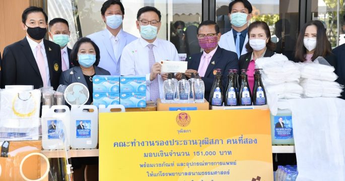 รองประธานวุฒิสภาคนที่สอง มอบเงินพร้อมอุปกรณ์ทางการแพทย์ แก่โรงพยาบาลสนามธรรมศาสตร์ เพื่อร่วมแรง ร่วมใจต้านภัยโควิด-19