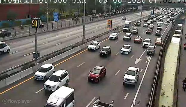 สวพ.FM91 รายงานจราจรเช้าวันอังคาร มอเตอร์เวย์ (ทล.7) ขาเข้า กม.1-กม.0 ศรีนครินทร์ รถมาก