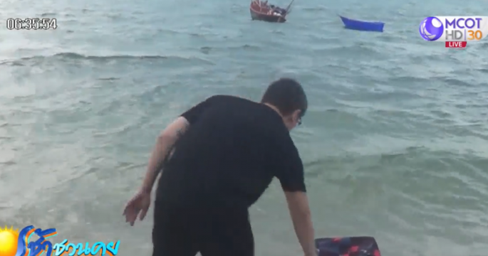 พบศพหญิงสาวถูกฆ่ามัดมือมัดเท้าถุงดำคลุมหัว ยัดใส่กระเป๋าลอยทะเลมาเกยตื้นที่ชายหาดบางพระ อำเภอศรีราชา จังหวัดชลบุรี