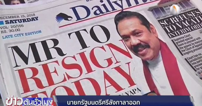 นายกฯ มหินทะ ราชปักษาของศรีลังกาจะลาออกจากตำแหน่งในวันนี้ หลังจากรัฐบาลของเขาไม่สามารถทำงานและอาจจะไม่สามารถผ่านร่างงบประมาณที่จะเริ่มตั้งแต่วันที่ 1 ม.ค.ปีหน้า
