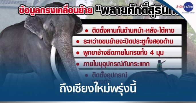 เครื่องบินที่บรรทุก พลายศักดิ์สุรินทร์ ถึงสนามบินเชียงใหม่แล้ว เมื่อเวลา 14.03 น. “วราวุธ” เผยเบื้องต้น ช้างอยู่ในความสมบูรณ์ ไม่หงุดหงิด