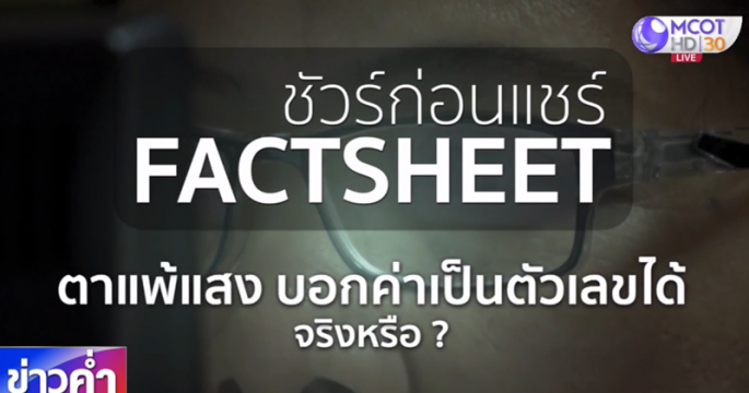 บนสังคมออนไลน์แชร์ข้อความว่า ตาแพ้แสงสามารถบอกค่าเป็นตัวเลขได้ ข้อเท็จจริงเรื่องนี้เป็นอย่างไร ติดตามจากศูนย์ชัวร์ก่อนแชร์