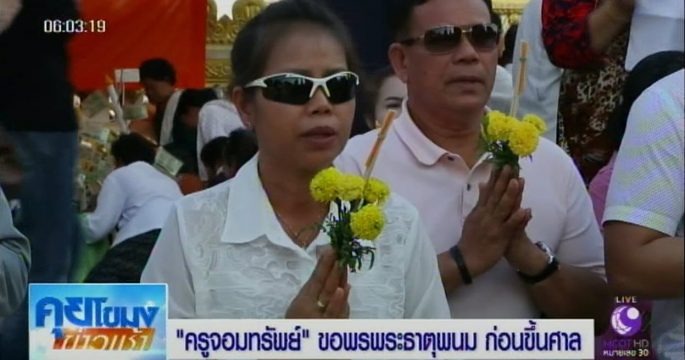 ครูจอมทรัพย์ ขอพรพระธาตุพนม ไหว้วิญญาณผู้ตาย และขอขมาเจ้ากรรมนายเวร ให้ช่วยทำความจริงให้ปรากฏ ก่อนขึ้นศาลวันนี้