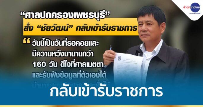“ชัยวัฒน์” ชนะคดี ศาลปกครองเพชรบุรี สั่ง ก.ทรัพยากรธรรมชาติฯ รับกลับเข้ารับราชการ