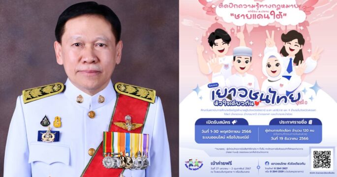 ศาลยุติธรรมเดินหน้าต่อเนื่อง “โครงการเยาวชนไทย หัวใจเดียวกัน รุ่นที่ 8” เพิ่มภูมิคุ้มกันด้านคุณธรรมจริยธรรม หล่อหลอมจิตสำนึกเด็กและเยาวชนจากสามจังหวัดชายแดนใต้ ผ่านความรู้ความเข้าใจในสิทธิหน้าที่พลเมืองที่ดีในสังคมตามบริบทกฎหมายเบื้องต้น