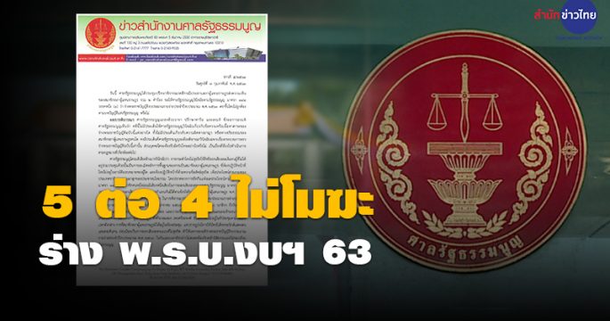 ศาลรัฐธรรมนูญอ่านคำวินิจฉัย กรณีประธานสภาผู้แทนราษฎรส่งความเห็นของ ส.ส. ขอให้ศาลรัฐธรรมนูญวินิจฉัยตามมาตรา 148 วรรคหนึ่ง (1) ว่า ร่าง พ.ร.บ.งบประมาณรายจ่ายประจำปีงบประมาณ พ.ศ. 2563 วงเงิน 3.2 ล้านล้านบาท ตราขึ้นโดยไม่ถูกต้องตามบทบัญญัติแห่งรัฐธรรมนูญหรือไม่ โดยศาลได้มีมติเสียงข้างมาก 5 ต่อ 4 เห็นว่า ร่าง พ.ร.บ.งบประมาณฯปี 2563 ไม่ขัดต่อรัฐธรรมนูญ ให้สภาผู้แทนราษฎรกลับไปโหวตวาระ 2-3 ใหม่