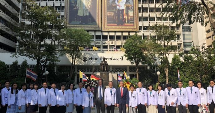 คณบดีศิริราช ให้การต้อนรับ ศ.ดร.ราล์ฟ เอฟ ดับเบิ้ลยู บาร์เทนชลากเกอร์ และศ.นพ.เดวิด เมบี ผู้รับพระราชทานรางวัลสมเด็จเจ้าฟ้ามหิดล