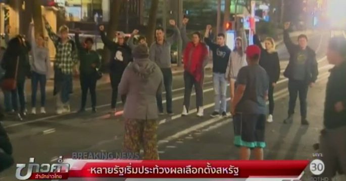 ชาวอเมริกันที่ผิดหวังกับผลการเลือกตั้งยังออกมาชุมนุมประท้วงติดต่อกันเป็นคืนที่สาม ตามเมืองต่างๆ นับสิบแห่งทั่วประเทศ ขณะที่ ทรัมป์ เปลี่ยนท่าทีใหม่ ทวีตข้อความชื่นชมผู้ประท้วง