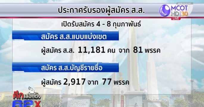 วันนี้ กกต. ประกาศรับรองผู้สมัครทั้ง ส.ส.แบ่งเขตและแบบบัญชีรายชื่อ แต่ไม่ประกาศรับรองผู้สมัคร ส.ส.บัญชีรายชื่อ 107 คน จากผู้สมัครทั้งหมด 2,917 คน