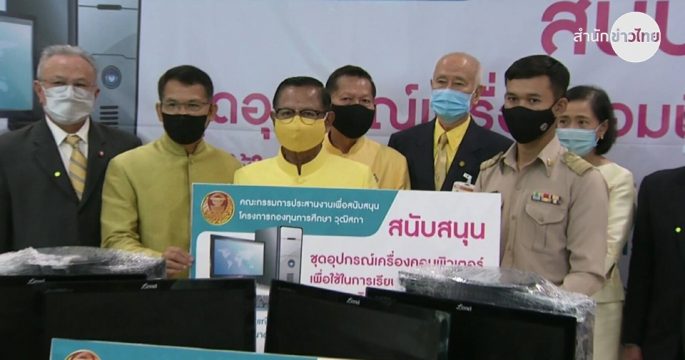 คณะกรรมการประสานงานเพื่อสนับสนุนโครงการกอทุนการศึกษา วุฒิสภา มอบชุดอุปกรณ์เครื่องคอมพิวเตอร์ ให้กับโรงเรียนในโครงการกองทุนการศึกษา จ.กาญจนบุรี เพื่อใช้ในการเรียนการสอนทางไกลผ่านระบบดิจิทัล