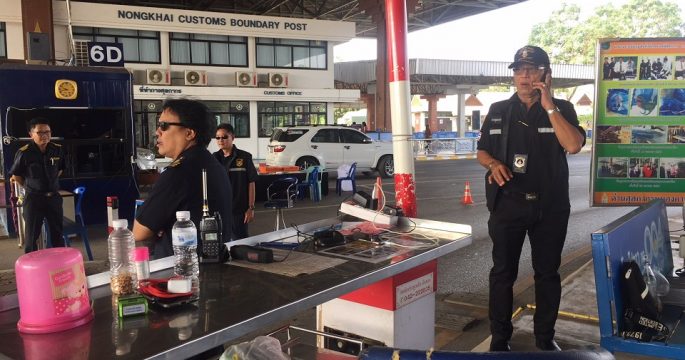 ศุลกากรตรวจเข้มรถยนต์ ที่ด่านพรมแดนสะพานมิตรภาพไทย-ลาว แห่งที่ 1 จ.หนองคาย หลังพบลักลอบขนน้ำมัน 600 ลิตรไปขายฝั่งลาว