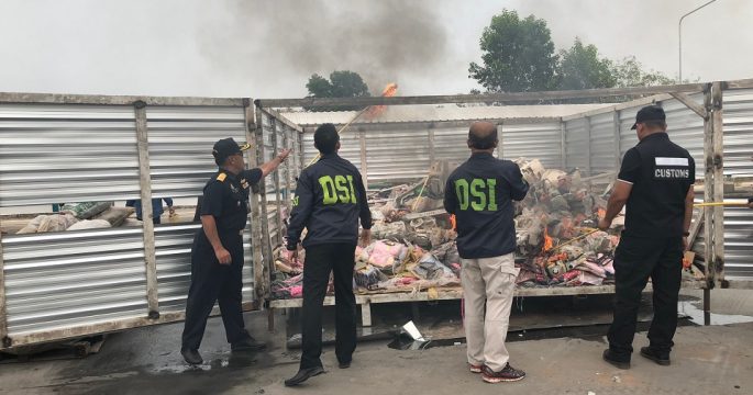 หนองคาย 27 มี.ค.- ทำลายราบ! ศุลกากรหนองคายเผาสินค้าผิดกฎหมายที่คดีสิ้นสุดแล้วหลายรายการ มูลค่า 21 ล้านบาท บ่ายวันนี้ (27 มี.ค.) นายสมบัติ ฆ้อนทอง หัวหน้าฝ่ายสืบสวนและปราบปราม ด่านศุลกากรหนองคาย พร้อมเจ้าหน้าที่ศุลกากร และตัวแทนจากกรมสอบสวนคดีพิเศษ (ดีเอสไอ ) ร่วมกันเผาทำลายสินค้าเลียนแบบเครื่องหมายการค้ายี่ห้อดัง และสินค้าลักลอบหนีศุลกากร อาทิ กระเป๋า เสื้อผ้า เครื่องเลื่อยโซ่ ไพ่พลาสติก บุหรี่ สุรา เบียร์ ไวน์ และยาเส้น รวมมูลค่าทางเศรษฐกิจกว่า 21 ล้านบาท สำหรับเครื่องเลื่อยโซ่ใช้วิธีทำลายด้วยรถแบคโฮบดทับให้เสื่อมสภาพก่อนนำไปเผาร่วมกับสินค้าชนิดอื่น นายสมบัติ กล่าวว่า เมื่อคดีถึงที่สิ้นสุดแล้ว ต้องนำของกลางทั้งหมดมาเผาทำลาย เพื่อไม่ให้นำไปใช้ประโยชน์หรือขายทอดตลาดได้.-สำนักข่าวไทย