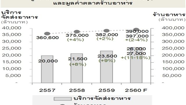 ศูนย์วิจัยกสิกรไทยคาดการสั่งอาหารออนไลน์หนุนตลาด Delivery ปี 60 เติบโตร้อยละ 11-15 สวนทางภาพรวมตลาดธุรกิจร้านอาหารที่เติบโตเพียงเล็กน้อย