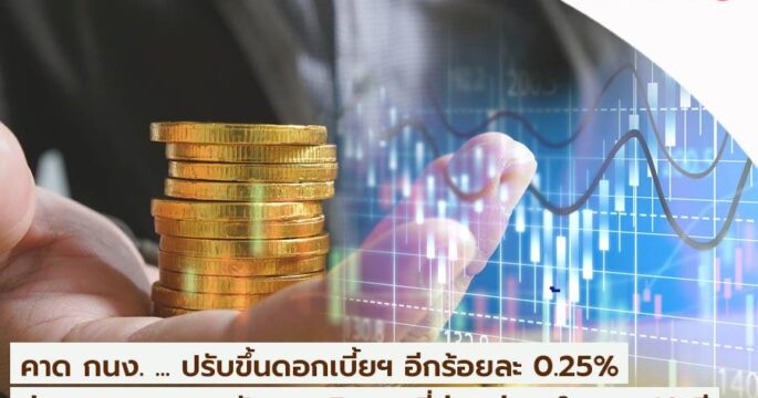 ศูนย์วิจัยกสิกรไทย คาด กนง.พรุ่งนี้ขึ้นดอกเบี้ย 0.25% เป็น 1.00% ท่ามกลางแรงกดดันจากค่าเงินบาทที่อ่อนค่าสุดในรอบ 16 ปี แตะ 37.89 บาท/ดอลลาร์ฯ ด้านกรุงไทย ประเมินเงินบาทผันผวนมีโอกาสแตะ 38 บาท/ดอลลาร์ฯ