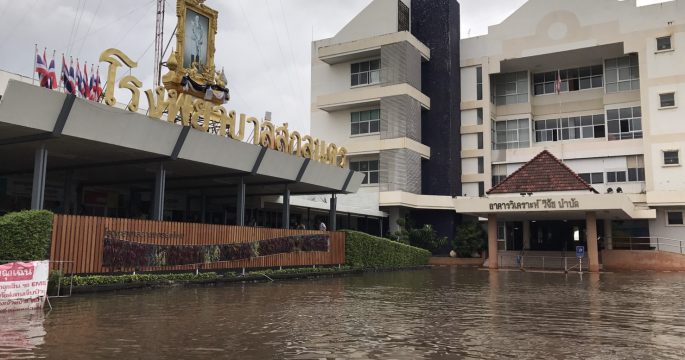 หลายพื้นที่ใน จ.สกลนคร ระดับน้ำเริ่มลดลง แต่ยังมีน้ำขังบางแห่ง โดยเฉพาะบริเวณถนนสุขเกษม ตลาดแผงลอยหน้าเทศบาล ร้านค้ายังคงปิด มีประชาชนเริ่มเอารถเข้าอู่