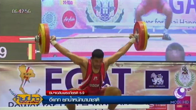 ศิริพงษ์ คำมะเริง จอมพลังยุวชนหนุ่มจากโรงเรียนกีฬา อบจ.สกลนคร กวาด 3 เหรียญทอง รุ่น 94 กิโลกรัมชาย ในอีแกท ยกน้ำหนักนานาชาติ ที่จ.ชลบุรี