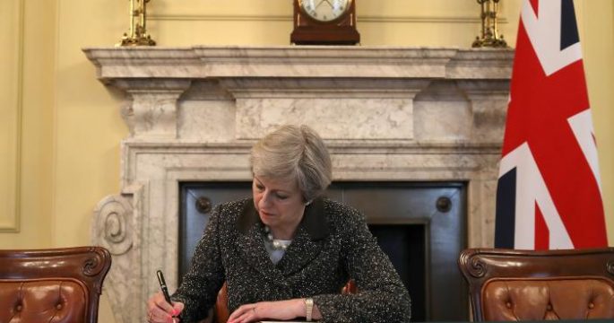 นายกรัฐมนตรีเธเรซา เมย์ ของอังกฤษลงนามเมื่อวานนี้ ในจดหมายฉบับประวัติศาสตร์เพื่อเริ่มต้นกระบวนการ