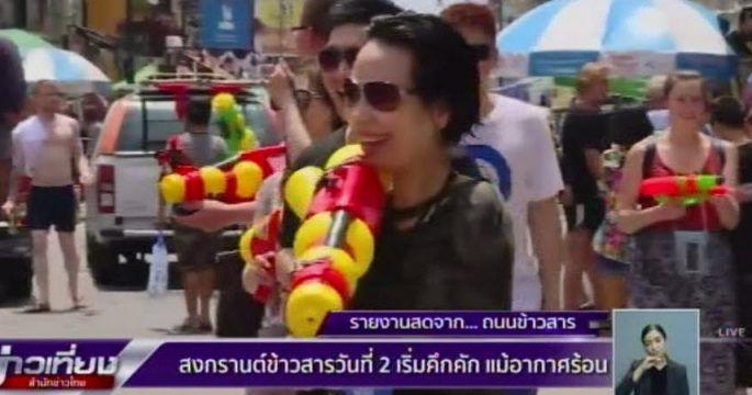 สงกรานต์เสื้อลายดอกถนนข้าวตอกคึกคักแต่เช้า ประชาชนออกมาเล่นสาดน้ำบริเวณสี่แยกวงเวียนหอนาฬิกากลางเมืองสุโขทัยจำนวนมาก ส่วนที่ยโสธร ประชาชนทำบุญและสรงน้ำพระเพื่อความเป็นสิริมงคล