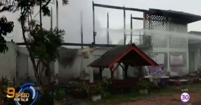 ไฟไหม้อาคารเรียนโรงเรียนวัดจันทน์ อ.สทิงพระ จ.สงขลา เจ้าหน้าที่ใช้เวลากว่า 3 ชั่วโมง จึงควบคุมเพลิงได้ พบอาคารถูกไฟไหม้เสียหายทั้งหลัง สาเหตุคาดไฟฟ้าลัดวงจร