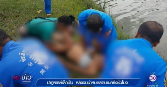 ภาพนาทีชีวิตหน่วยกู้ภัยช่วยเด็กชายวัย 13 ขวบ จมน้ำหมดสติและไม่มีชีพจร ผายปอดและปั๊มหัวใจกว่าครึ่ง ชม. แต่มีปาฏิหาริย์เด็กมีชีพจรกลับคืนมาอีกครั้ง