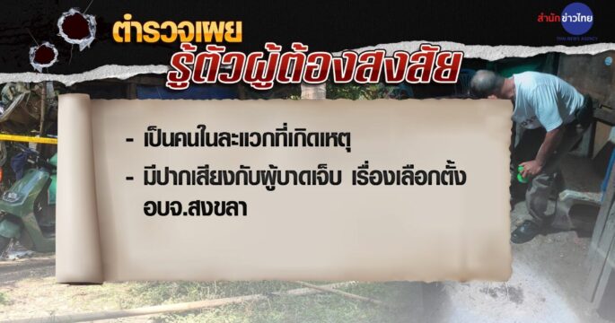 ตำรวจสงขลาเร่งล่าคนร้ายซุ่มยิงหนุ่มเรือน้ำมันบาดเจ็บสาหัส คาดมีปากเสียงกันเพราะไม่พอใจผลการเลือกตั้ง อบจ. ที่ต่างฝ่ายต่างสนับสนุนผู้สมัครคนละพรรค