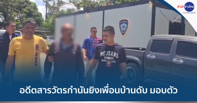 อดีตสารวัตรกำนันปืนดุมอบตัวแล้ว หลังก่อเหตุยิงเพื่อนบ้านเสียชีวิต 1 คน และบาดเจ็บ 2 คน สาเหตุมาจากสุนัขของผู้ตายกัดสุนัขของผู้ต้องหา