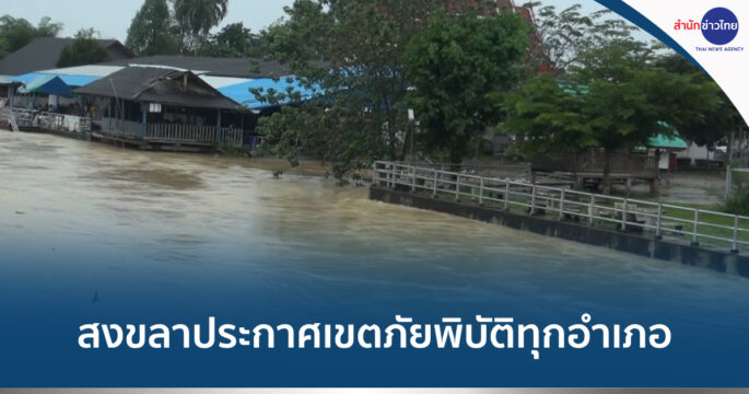 ผู้ว่าฯ สงขลา ลงนามประกาศให้ทั้ง 16 อำเภอ เป็นเขตพื้นที่ประสบภัยพิบัติกรณีฉุกเฉินอุทกภัยและวาตภัย เพื่อเร่งรัดให้ความช่วยเหลือประชาชน บรรเทาความเดือดร้อน โดย อ.จะนะ เทพา นาทวี และสะบ้าย้อย ยังมีระดับน้ำท่วมเพิ่มสูงขึ้น