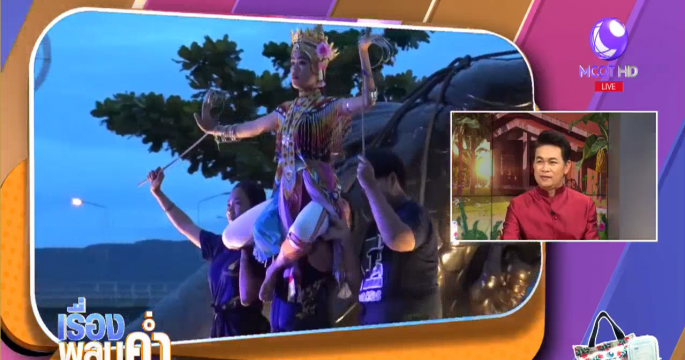 นักเรียนโรงเรียนนวมินทราชูทิศ ทักษิณ จ.สงขลา โชว์มโนราห์เชิดหุ่นคน โดยนำตัวหนังตะลุงมาประกอบกับการร่ายรำมโนราห์ได้อย่างลงตัวและสวยงาม